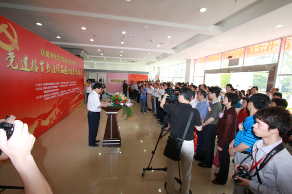 惠州市客家会承办了庆祝中国共产党建党90周年党建格言书法作品巡回展活动。图为5月29日巡回展首展仪式情景。省委宣传部原副部长胡中梅、市常委纪委书记李松、市人大副主任黄新林等200多人出席了首展仪式。